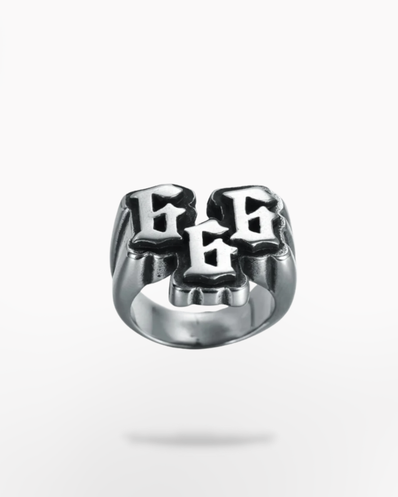 This techwear 666 ring is a striking accessory for rock, metal, and techwear fans who want to stand out.