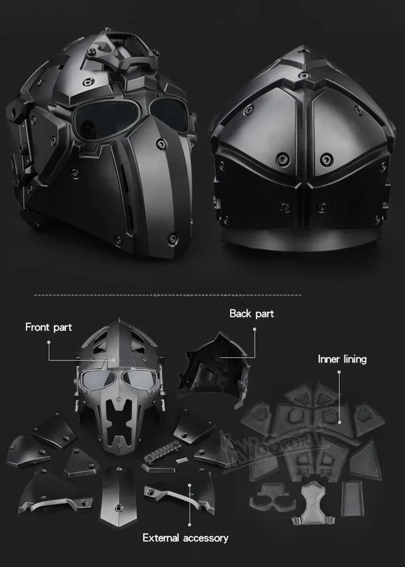 Achieve the ultimate intimidating look with this techwear cyberpunk full face helmet featuring an aggressive, futuristic design.
