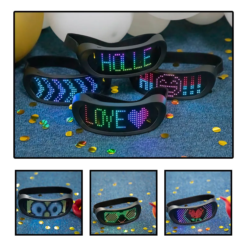 Turn heads instantly with these techwear luminous glasses led featuring a vibrant full-color pixel display that animates across your eyes for a bold, high-tech look.